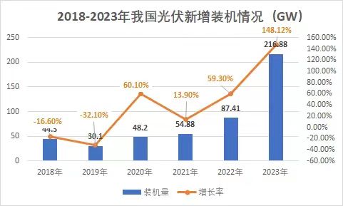 裝機量再度刷新!光伏市場持續火熱! 1月26日,國家能源局發布2023年全國電力工業統計數據。2023年1~12月光伏新增裝機216.88GW,同比增長148.12%。 去年,對于光伏行業來講是爆發式增